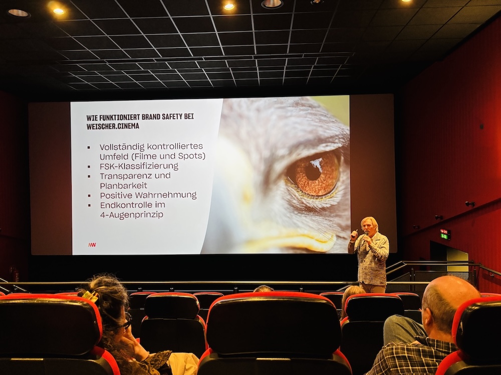 In seiner kurzweiligen Präsentation spannte Michael Kindermann den Bogen von der Geschichte des Kinos in Österreich bis zu aktuellen Entwicklungen und Herausforderungen im Bereich Kinowerbung. Besonders im Fokus: Brand Safety, die bei Weischer.Cinema höchste Priorität hat. Jeder Werbespot wird vor seiner Ausstrahlung von Kindermann persönlich geprüft – denn entscheidend ist, dass Marken nicht in einem unerwünschten oder schädlichen Kontext erscheinen. Auch visuelle Qualität zählt: Entspricht ein Spot nicht den hohen ästhetischen Ansprüchen des Kinopublikums, muss er überarbeitet werden.